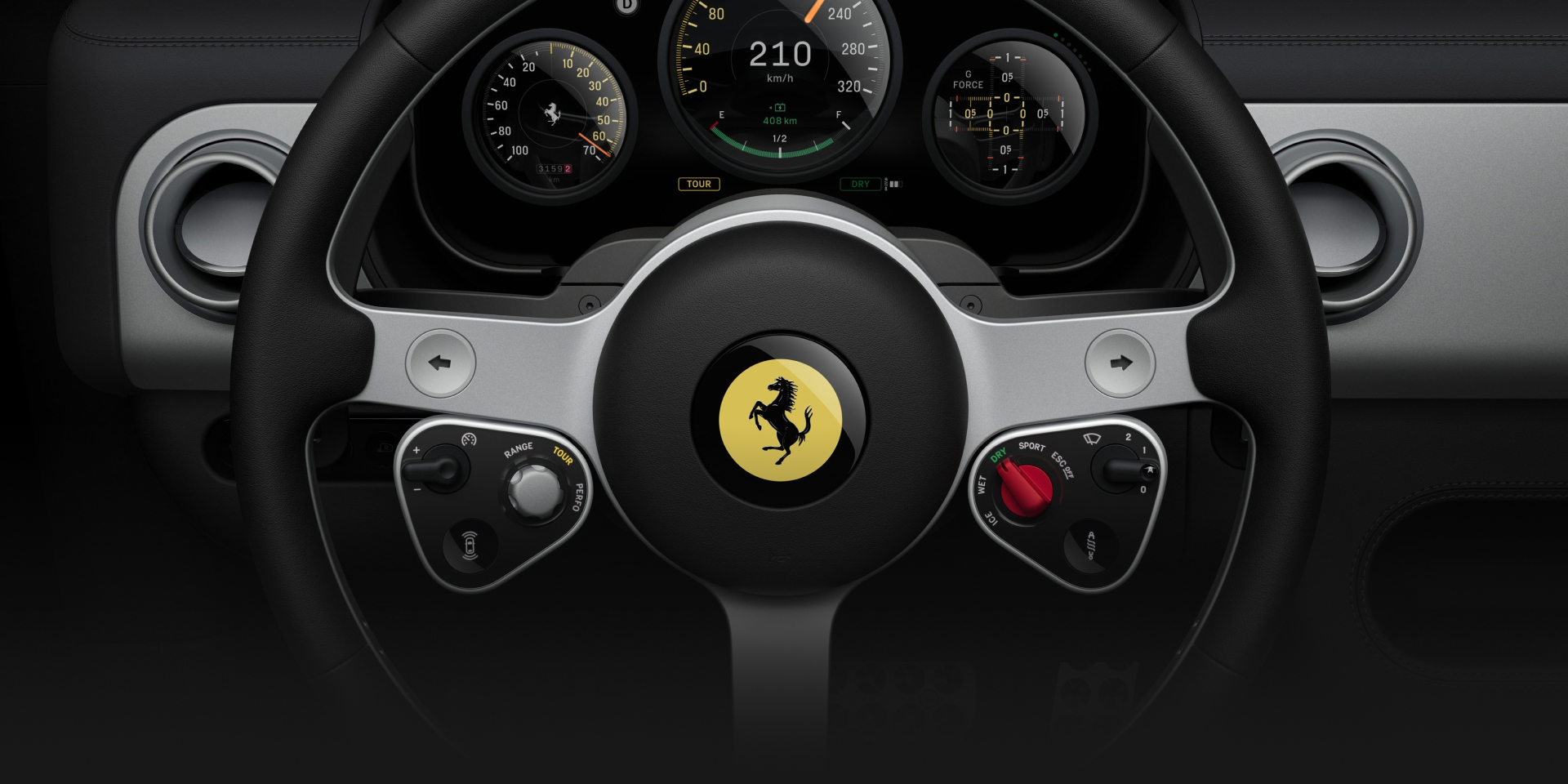 Ā Ā Ā Ā Ā Ā A Driver Focused Experience The steering wheel remains the heart of the Ferrari experience. In the Luce, it integrates intuitive controls while preserving tactile feedback. Key driving information is presented in a crisp digital cluster positioned directly in the driverās line of sight, ensuring clarity at every moment.